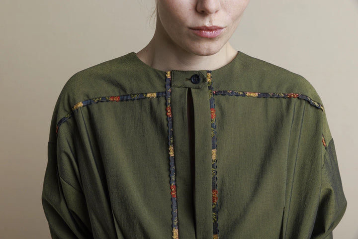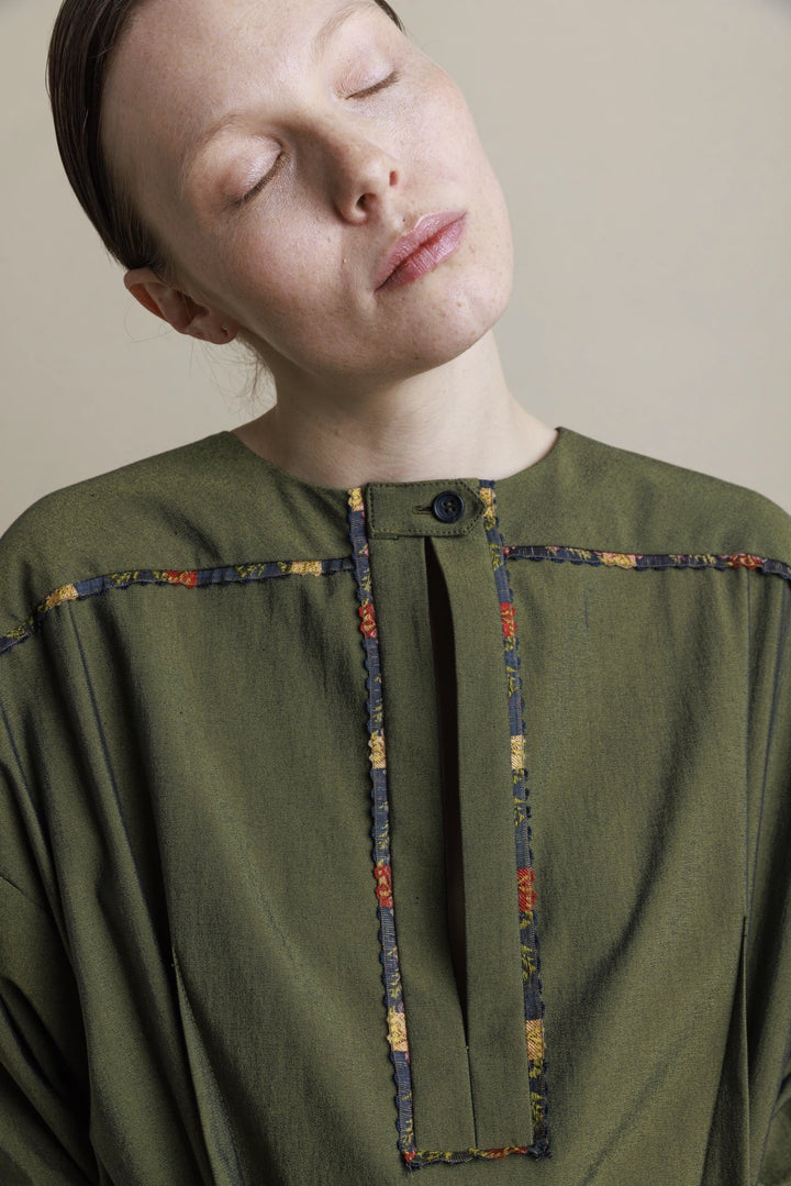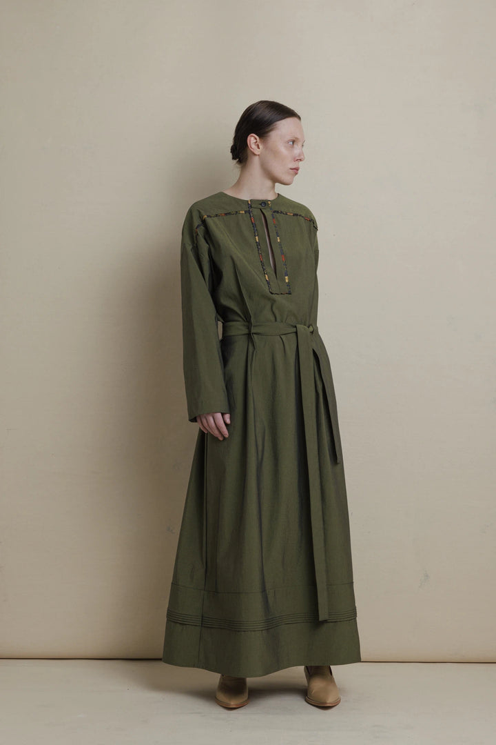 Green dress with multicolored finishing